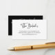 Esses cartões de informações de convidados de casamento, preto e branco, modernos apresentam uma tendência e estilo elegante, com roteiro casual manuscrito e texto clássico. Você pode usar esses cartões para dirigir, receber ou transportar informações, informações sobre hotel ou acomodações e quaisquer outros detalhes de casamento que você precise conhecer. A parte traseira da placa é preta com mais caligrafia branca.