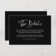 Estes cartões de informação de convidados negros e modernos apresentam uma tendência e estilo elegante, com escrita casual branca e texto clássico. Você pode usar esses cartões para dirigir, receber ou transportar informações, informações sobre hotel ou acomodações e quaisquer outros detalhes de casamento que você precise conhecer.