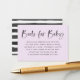 Na moda e cartão de recinto de pedido de livro de tendências para o chá de fraldas de menina. A frase "Livros para Bebê" é exibida no topo em uma fonte de script de aquarela com letra manuscrita contra um fundo roxo claro. O design apresenta uma solicitação para trazer um livro ou adicionar seu texto personalizado. O verso da placa de solicitação do livro apresenta um design de faixa de aquarela preta. A design coordena-se com os nossos convites de chá de bebê do templo francês da Bebe Bonjour.
