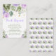 Belo pedido de livro de chás de fraldas com arranjos florais verdes e roxos. Perfeito para um chá de fraldas. As palavras podem ser alteradas para se adequarem aos seus próprios detalhes ou requisitos