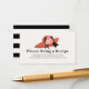 Este chá de panela chic e elegante traz uma placa de gabinete de solicitação de receita/receita com um chapéu vermelho de estilo derby grande com rosas e um arco/fita preto. O verso apresenta um fundo branco com faixas pretas. Personalize para suas necessidades. Você pode encontrar mais produtos correspondentes na minha loja.