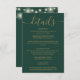 Um elegante cartão de informações de detalhes de casamento verde esmeralda e ouro com luzes bonito de cordas. Personalize com seus detalhes especiais definidos na tipografia da na moda e seus nomes e data do casamento no sentido inverso. Projetado por Thisnotme©