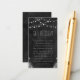 String of Lights Chalkboard © Sunny Mars Designs. Na moda, moderno, elegante, clássico, de moda, personalizável em chic, casual de 2 pol x 3,5 pol., miniplacas de registro de presentes de casamento com um belo design de quadro negro, com bolbos de cordas ou luzes de cordas penduradas acima com um design tropical floral abaixo.