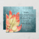 Cartão De Informações Suculenta com ponta laranja aquarela recepção azul