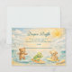 A cheerful surf-inspired baby shower design featuring sunny skies, rolling ocean waves, seashells, and playful beach elements. This light, summery artwork is ideal for a relaxed seaside celebration and can be easily personalized with names, dates, and event details while keeping a fresh coastal vibe.