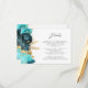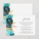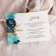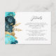 Cartão De Informações Teal Aqua Floral Gold Script Wedding Details