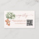 Cartão de registro do código QR do chá de fraldas do urso de pelúcia e dos balões verdes de sábio.