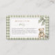 Cartão De Informações Teddy Bear SageGreen Gingham Books for Baby Shower