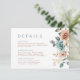 Este cartão de detalhes de casamento elegante apresenta um design floral romântico em aquarela com rosas terracota suaves, flores azul-teal e pétalas brancas cremosas. A folhagem verde suave adiciona um toque vintage, tornando-o perfeito para um tema de casamento rústico, boho-chic ou inspirado na natureza. Personalize seu dia especial com este design botânico atemporal! . Para personalização ou produtos adicionais com este design, por favor, sinta-se à vontade para entrar em contato comigo.