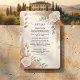 Embrace elegant earthy tones with this beautifully balanced arrangement of dusty rose, warm beige, and sage green leaves for a perfect fall celebration.This design establishes a clean, sophisticated visual hierarchy, setting classic uppercase serif typography against a pristine off-white background. The layout is anchored by soft, watercolor-style corner compositions featuring dusty rose blooms, dried pampas grass, and muted sage green eucalyptus. The warm, earthy palette creates a highly readable and balanced aesthetic. This is a flat printed image with a printed paper texture effect, not actual raised material.