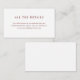 Esses cartões de escuta de detalhes minimalistas e elegantes apresentam um texto vermelho escuro, marrom sobre fundo branco, para uma aparência simples e na moda. Basta digitar os detalhes sobre acomodações de hotel, direções de condução e outras informações importantes para seus convidados.