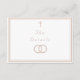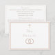 Design front features a pure white background to elegant, pale-pink heading displayed in center. The image of an elegant cross graces the top, as the image of joined wedding rings appears below heading. Entire design is framed by a fine, elegant border which adds a classy appearance to the design. Reverse features text displayed in the proper format for a traditional Catholic enclosure card which includes reception information, accommodations information. Bridal registry information is featured at bottom.