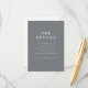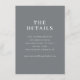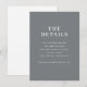 Este cartão de inclusão de casamento apresenta um design minimalista com um fundo cinza carvão sólido, criando uma estética elegante e moderna. O layout é simples e equilibrado, utilizando amplo espaço negativo para destacar a tipografia serifada branca centralizada que direciona os convidados a detalhes adicionais no site do seu casamento. As linhas limpas e o alinhamento preciso melhoram a legibilidade, mantendo um tom formal e sofisticado, perfeito para transmitir informações essenciais de maneira elegante. Ideal para casais que buscam uma aparência refinada e sem bagunça, este cartão adiciona um toque de classe a qualquer conjunto de convite de casamento.