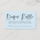 Tíquete de ravação de na moda e fralda de tendências para o seu chá de fraldas. As palavras "rifa de fralda" são exibidas no topo do texto escrito à mão com letra aquosa em cima contra um fundo azul claro. O design apresenta uma solicitação para trazer qualquer fralda de tamanho para ganhar um prêmio especial ou adicionar seu texto personalizado. O verso da placa de gabinete apresenta um design de faixa de aquarela preta. A design coordena-se com os nossos convites de chá de bebê do templo francês da Bebe Bonjour.