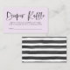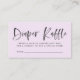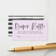 Tíquete de ravação de na moda e fralda de tendências para o seu chá de fraldas. As palavras "rifa de fralda" são apresentadas na fonte do script de aquarela com letra superior, com letra maiúscula, sobre um fundo roxo claro. O design apresenta uma solicitação para trazer qualquer fralda de tamanho para ganhar um prêmio especial ou adicionar seu texto personalizado. O verso da placa de gabinete apresenta um design de faixa de aquarela preta. A design coordena-se com os nossos convites de chá de bebê do templo francês da Bebe Bonjour.
