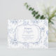 Adicione um toque elegante às suas festividades de chá de fraldas com a nossa Placa de Gabinete Raffle Fralda Chá de fraldas Toile De Jouy. Esta carta encantadora apresenta o clássico padrão Toile De Jouy, mostrando cenas pastorais intrincadas que trazem um senso de sofisticação e graça para sua celebração. O delicado sotaque do arco acrescenta um detalhe doce que completa perfeitamente o convite e outros temas de decoração. Projetada para integrar-se perfeitamente ao seu chá de fraldas, esta placa de gabinete convida os convidados a participar de uma deliciosa rifa de fralda. O cartão fornece instruções claras sobre o funcionamento do rifle, encorajando os hóspedes a trazer um pacote de fraldas em troca de uma oportunidade de ganhar um prêmio especial. Impresso no estoque de cartão de alta qualidade, a Fralda Raffle Enclosure Card não só melhora o decor do chá de fraldas como também serve como um elemento funcional que promove o noivado e a diversão entre os convidados. O design eterno a torna adequada a qualquer estilo de chá de fraldas, de reuniões elegantes a celebrações caprichosas. Torne o seu chá de fraldas ainda mais memorável com esta delicada placa de gabinete, permitindo que seus entes queridos se juntem ao entusiasmo de receber a nova chegada enquanto adiciona um toque de charme de vintagem ao seu evento.