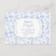 Adicione um toque elegante às suas festividades de chá de fraldas com a nossa Placa de Gabinete Raffle Fralda Chá de fraldas Toile De Jouy. Esta carta encantadora apresenta o clássico padrão Toile De Jouy, mostrando cenas pastorais intrincadas que trazem um senso de sofisticação e graça para sua celebração. O delicado sotaque do arco acrescenta um detalhe doce que completa perfeitamente o convite e outros temas de decoração. Projetada para integrar-se perfeitamente ao seu chá de fraldas, esta placa de gabinete convida os convidados a participar de uma deliciosa rifa de fralda. O cartão fornece instruções claras sobre o funcionamento do rifle, encorajando os hóspedes a trazer um pacote de fraldas em troca de uma oportunidade de ganhar um prêmio especial. Impresso no estoque de cartão de alta qualidade, a Fralda Raffle Enclosure Card não só melhora o decor do chá de fraldas como também serve como um elemento funcional que promove o noivado e a diversão entre os convidados. O design eterno a torna adequada a qualquer estilo de chá de fraldas, de reuniões elegantes a celebrações caprichosas. Torne o seu chá de fraldas ainda mais memorável com esta delicada placa de gabinete, permitindo que seus entes queridos se juntem ao entusiasmo de receber a nova chegada enquanto adiciona um toque de charme de vintagem ao seu evento.