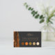 A borda esquerda deste cartão de informações sobre o traje de casamento apresenta uma borda de ágata em aquarela laranja queimada, decorada com brilho dourado falso. A palavra "Traje" aparece em letra manuscrita dourada, com o pedido do código de vestimenta em fonte copperplate dourada em um fundo preto-claro. Personalize facilmente os cinco círculos de cores escolhendo "Personalizar este modelo > Editar usando ferramentas de design". Insira a URL do seu site de casamento para gerar um código QR no verso do cartão e edite o texto com seus nomes e data de casamento.