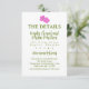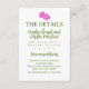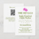 Funky enclosure card in white with pops of color in pink, tropical and pear green with your wedding details and a whimsical hand painted hibiscus flower and space for your unique QR code.