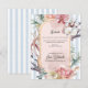 The soft blush arch panel is accented with a delicate gold border, while the subtle blue striped background adds a refined coastal and destination wedding feel. This elegant enclosure card perfectly complements tropical, beach, and destination wedding themes.