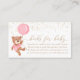 Cartão De Informações Urso Rosa-Rosa com Livros de Balões para Bebê
