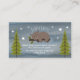 Um cartão de rifa de fralda com ilustração de um urso bebê que se encontra sobre um galho de árvore rodeado por estrelas e árvores sempre verdes sobre um fundo inspirado na cor da água azul.