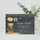 Um encantador design de chá de bebê preppy que apresenta um adorável ursinho vestido com um clássico casaco xadrez verde e gravata borboleta. Acima do urso, um delicado varal exibe minúsculas roupas e sapatos de bebê, criando uma cena nostálgica de berçário de contos de fadas. O fundo azul-marinho profundo e a sutil borda xadrez adicionam um toque refinado e inspirado no vintage que se sente ao mesmo tempo elegante e divertido. Perfeito para uma celebração de chá de bebê estilosa com uma estética preppy clássica.