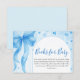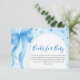This design features a Valentines themed baby shower "A Little Sweetheart Is On The Way" with a blue bow ribbon and water coloured pastel blue love hearts. Perfect for a baby boy baby shower theme.