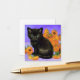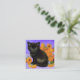 Cartões de gabinete com um gatinho Van Gogh preto! Este gatinho fofo está sentado ao lado dos girassóis em frente a um fundo roxo. Um presente maravilhoso para amantes de gatos e colecionadores de arte holandeses!
