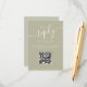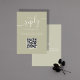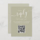 Esta design apresenta um cartão de site de código QR RSVP de casamento com cores verdes sábias, um estilo minimalista, com o nosso website online, com o simples roteiro elegante.