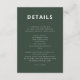 Cartão De Informações Verde escuro | Casamento Moderno de Moss Minimalis