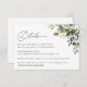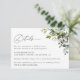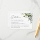 Complete o conjunto de papelaria do seu casamento com este cartão de detalhes elegante. O design apresenta folhas de eucalipto e verdes sobre um fundo branco.