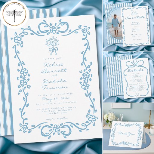 Whimsical Blue Hand Drawn Floral Stripe WeddingCriado por Kathe Santillo