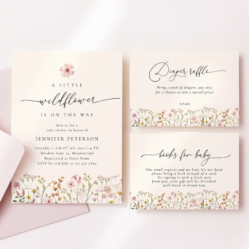 Cartão De Informações Wildflower Baby Shower Diaper Raffle Ticket