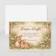 Celebrate a sweet new arrival with this charming woodland baby shower design, featuring a gentle baby deer nestled among leafy greenery, wildflowers, and whimsical forest mushrooms. Inspired by classic storybook illustrations and soft nature palettes, the artwork creates a warm, cozy atmosphere that feels timeless and heartfelt.