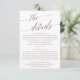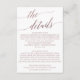 Esta elegante placa de inserção de detalhes de caligrafia rosa dourada é perfeita para um casamento outono. A design cor-de-rosa-pincelada apresenta uma carta minimalista decorada com tipografia da folha de ouro rosa-falso romântica e caprichosa. Nota: Este design não apresenta folha de ouro rosa real. É um gráfico de alta qualidade feito para se parecer com folha de ouro rosa.