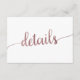 Este cartão de núpcias de ouro rosa é perfeito para um casamento simples. A design apresenta uma bela caligrafia de folha de rosa de ouro falso. Pode ser usado como um cartão de detalhes de casamento ou festa de solteira. Nota: Este design não apresenta folha de ouro rosa real. É um gráfico de alta qualidade feito para se parecer com ouro rosa brilhante.