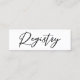 Simplesmente chique e elegante, nossa coleção de casamento de inverno minimalista apresenta uma tipografia cursiva elegante para o seu evento moderno. Impressione seus convidados com um cartão de inserção de lista de presentes de casamento ousado com uma escrita preta simples em um cartão retangular longo.