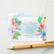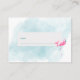 Fundo lavado com azul poeirento em estilo aquarela com buquês florais tropicais havaianos e um pássaro flamingo rosa para um luau de praia moderno de verão, aloha, oceano, praia, tema de chá de bebê personalizado com rifa de fralda.