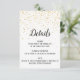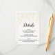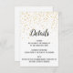 Este cartão de inserção de detalhes de Confetti Dourado clássico é perfeito para uma festa de aposentadoria elegante. O design apresenta um confete dourado falso com simples caligrafia de cinza escura sobre um fundo branco.
