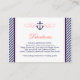 As direções modernas do casamento pré-disquete inserem design de cartão com um gráfico náutico de âncora e um deslocamento de caligrafia elegante florescem num fundo de banda diagonal de tendência. Clique no botão PERSONALIZAR TI para personalizar fontes, mover texto e criar seu próprio design de convite exclusivo.