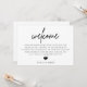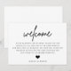 Este cartão de boas-vindas é a maneira perfeita de dar boas-vindas aos convidados em uma recepção ou para dar boas-vindas aos convidados de fora da cidade para o hotel durante o fim de semana.