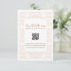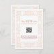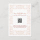 Placas de gabinete rosa sofisticadas e exclusivas personalizadas com código QR e site na Web, para RSVP on-line. Projetado no estilo elegante, sutil e suavemente com um cadarço branco em quadros cor-de-rosa. As placas de gabinete de casamento têm fundo branco, ornamentos e texto cor-de-rosa.