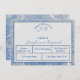 O design apresenta um efeito de "mármore" elegante em tons azuis e cinzas como fundo para a forma que exibe o seu texto. A aparência de fitas delicadas sobrepõe o design. O verso apresenta o mesmo efeito de mármore com a imagem da fita e do arroz lançado. Todo o texto é personalizável.