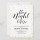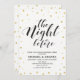 Um convite de janto de ensaio de na moda, com tipografia moderna e bolinhas de ouro bonitinhas. Projetado por BaraBom Studio