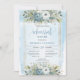 ✅ Para procurar itens correspondentes 210W em minhas coleções ✅ Comemorar o início de sua eternidade em estilo com este convite de janto de ensaio de cor d'água azul empoeirado e eucalipto, acentuado lindamente com uma estrutura de brilho dourado tecida. O design apresenta flores azuis suaves, verde delicado de eucalipto e sopros de ouro — uma mistura perfeita de encanto romântico, boho e elegante. Ideal para casamentos modernos, rústicos, ou eternos, este convite floral azul empoeirado dá o tom para uma noite inesquecível antes do grande dia. Sua indústria de aquarela e um par de paletas neutro sem esforço com celebrações internas e externas — de jantadas de jardim a reuniões costeiras. Totalmente personalizável com seus nomes, detalhes de eventos e informações de RSVP, este convite para janto de ensaio adiciona um toque de sofisticação à sua suíte de papelaria de casamento. Coordene-se com as datas, os menus e os sinais de boas-vindas da mesma coleção para uma estética de casamento uniforme e coesa. Impresso em um papel de qualidade superior com acabamentos profissionais, este design é elegante e versátil, fazer que é a escolha perfeita para casais que adoram detalhes de casamento refinados e inspirados na natureza.