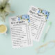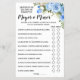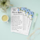 Blue Flowers Ove ou under Chá de panela English and Spain (frente e verso). Mudar a redação para o design para as versões em inglês e espanhol. Para personalização adicional (pergunta de alteração e outra redação, cor da fonte, estilo da fonte ), clique em personalizar, role para baixo e clique no link "clique para personalizar mais". COMO JOGAR: Os convidados adivinham se acham que o número em cada declaração está acabado ou abaixo