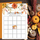 Este cartão de bingo de chá de panela de outono divertido e festivo apresenta belas flores, folhas de outono e abóboras. É a maneira perfeita de deixar seus convidados entusiasmados com o próximo casamento da futura noiva, enquanto também desfruta de uma competição amigável.