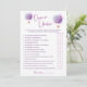 Apresentamos o nosso Cartão de Jogo "Acima & Abaixo" Borboletas Balão Lilás, um charmoso complemento para o seu chá de noiva ou festa de despedida de solteira. Com caligrafia elegante, borboletas caprichosas e balões lilases, este cartão de jogo convida os convidados a adivinhar e se divertir. Adicione um toque de emoção à sua celebração com este envolvente cartão de jogo.