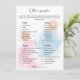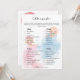 Esse cartão de jogo de aquarela é perfeito para uma celebração divertida e festiva. A design de aquarela é bonita e branca, e os sotaques rosa e azul adicionam um toque de diversão. O Cartão de Jogo do Festa de Revelação de Gênero da Watercolor é certamente um sucesso para a sua festa e deixa os seus convidados entusiasmados para descobrir o sexo do seu bebê.